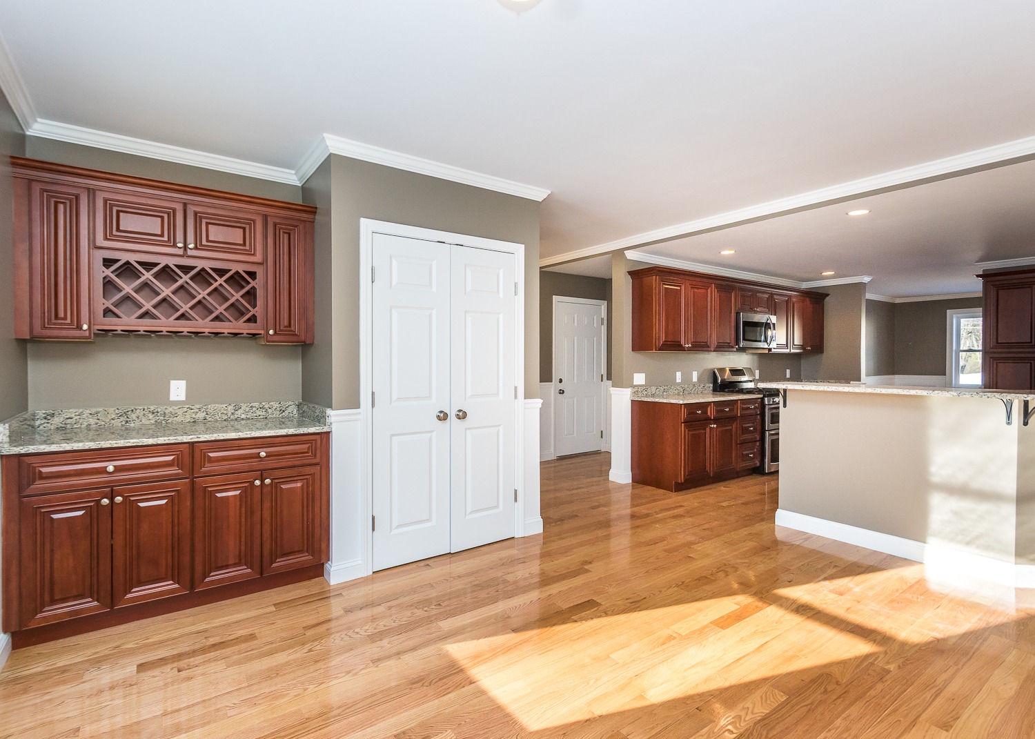 What we did: The homeowners wanted to open up their kitchen to create a more inviting space. They also wanted to update the appearance, appliances and add more storage space. Along with renovating the kitchen we also added on a mudroom and a small hallway office.